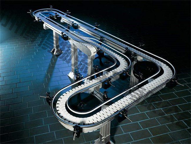 轉(zhuǎn)彎鏈板輸送機采用π型轉(zhuǎn)彎鏈板作為輸送載體,鏈板運行在高分子聚甲醛制作的專用轉(zhuǎn)彎導(dǎo)軌里;或使用不銹鋼轉(zhuǎn)彎鏈板并使用帶磁性的轉(zhuǎn)彎導(dǎo)軌,使輸送鏈板始終運行在專用導(dǎo)軌里面,具有運行平穩(wěn),安裝方便的特點。
